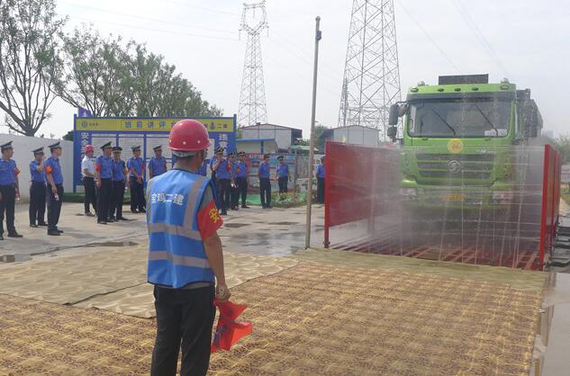 現(xiàn)場講解員從門口圍擋設(shè)置太陽能安全警示燈、揚塵污染防治包抓公示牌、門口降塵措施、環(huán)境檢測系統(tǒng)、治污減霾承諾書、臨邊圍擋噴淋系統(tǒng)、霧泡、抑塵灑水車、車輛過水槽、全自動沖洗臺、門禁系統(tǒng),密目網(wǎng)遮蓋裸露場地、施工便道硬化、垃圾清掃、灑水揚塵、渣土清運車輛管理等管理環(huán)節(jié)一一進行了介紹。由于舉措到位、管理到位,從而有效防止場內(nèi)揚塵污染的產(chǎn)生,達到政府環(huán)保要求。