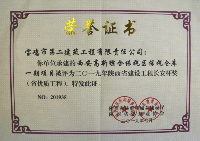 11月12日,陜西省住建廳組織在西咸新區(qū)灃西新城西部科技創(chuàng)新港舉行頒獎儀式,由公司第三十四項目部承建的石鼓·天璽臺13#、14#住宅樓及地下車庫工程和第三十五項目部承建的西安高新綜合保稅區(qū)保稅倉庫一期項目雙獲2019年陜西省建設(shè)工程“長安杯”,這是公司獲得的第20、21項“長安杯”。